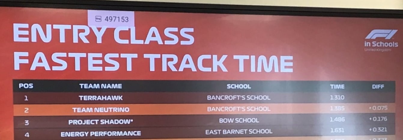 Over the last eight months a group of very enthusiastic Removes (Year 8) have designed, constructed and tested their own C02 powered F1 cars. They were put to the test against cars from other London schools over two days. At one stage, the Bancroft’s teams sat in first and second places on the leaderboard. At the end of the event, Terrahawk claimed the award for Fastest Car while Team Neutrino were awarded Star Quality (for their verbal presentation), Best Engineered Car and overall First Place. Qualification for the regional finals also means the teams are eligible to receive theirBronze CREST Awards.